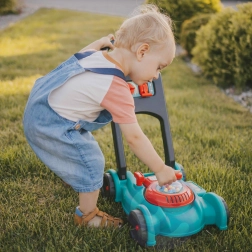 Perfekt sæt til små børn, der elsker at efterligne deres forældre, når de arbejder i haven! Denne børnegræsslåmaskine har hjul, der nemt kan køre på den rute, barnet bestemmer. Det giver børnene timer af aktiv udendørs sjov.