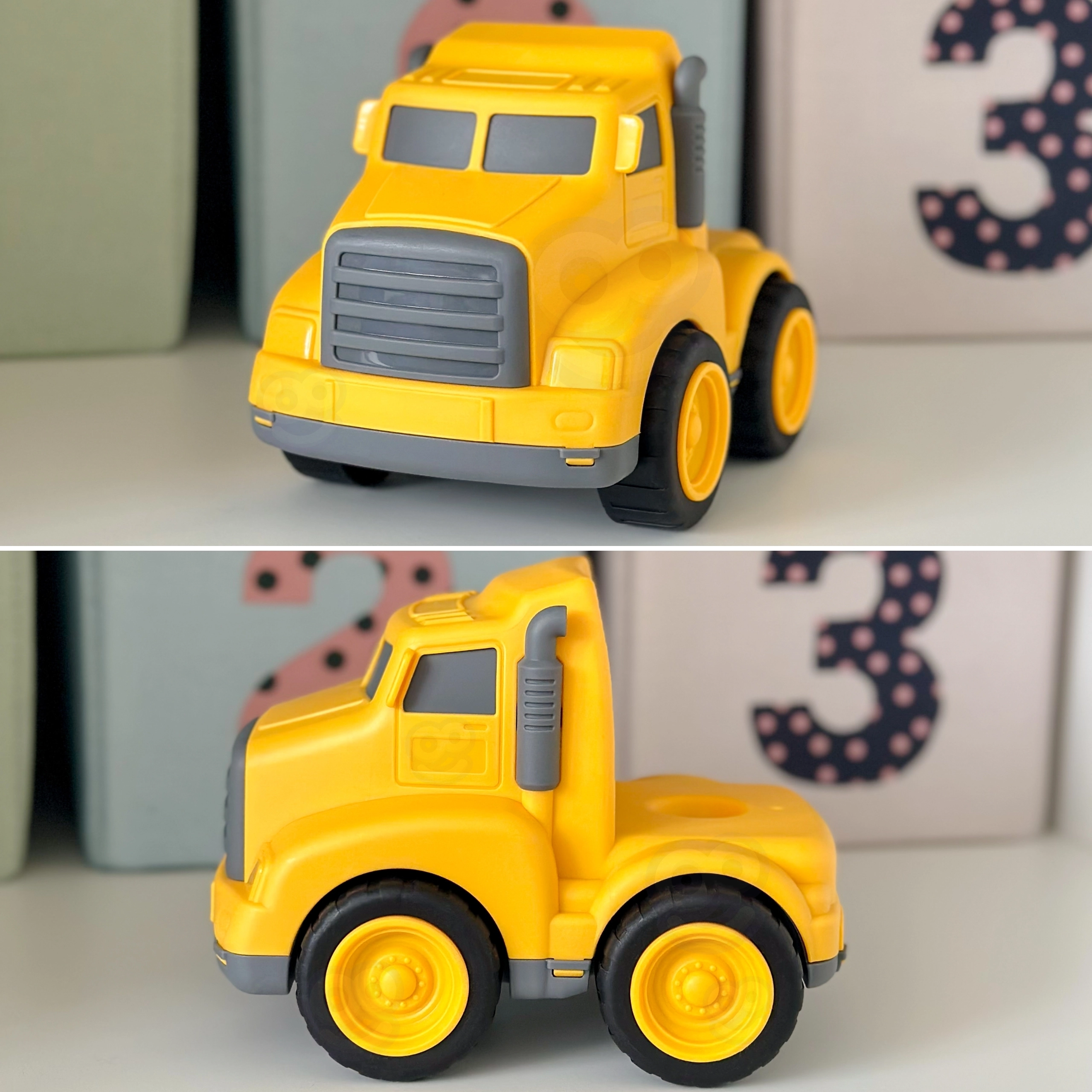Sikkert, robust plastmateriale, afrundede kanter og markante farver gør sættet til et ideelt valg til daglig leg inde og ude. Børnene træner kreativitet, fantasi og koordination ved at laste og losse køretøjer, transportere last eller simulere arbejde på byggepladsen.