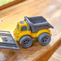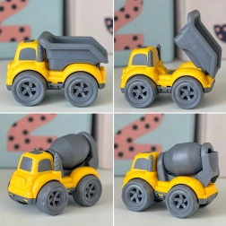 Sættet med tre WOOPIE-køretøjer tager børnene direkte med på byggepladsen. Hvert køretøj har bevægelige dele til autentiske scenarier – betonblanderen roterer tromlen, tipvognen tipper ladet, og skraldebilen muliggør læsning af affald. Takket være friktionsdrev er det nok at skubbe køretøjet, så kører det selv, hvilket understøtter aktiv leg uden batterier.