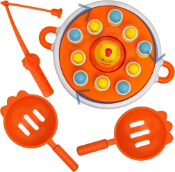 - 4 i 1 (fangst med stang, katapult med gribning, musikalsk roterende skive, kylling–lille bil)