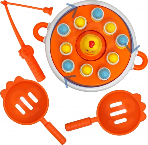 Den magnetiske stang gør fangsten lettere, og den større aftagelige kylling fungerer som en sjov lille bil til flere legescenarier.