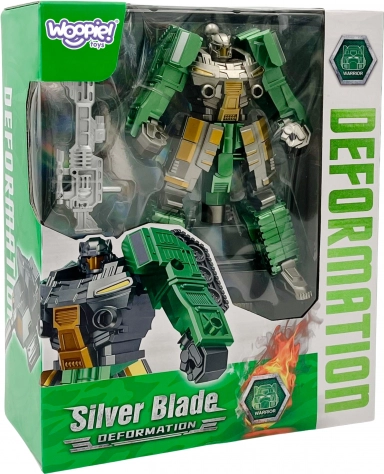 Gør dig klar til et fantastisk eventyr med den transformerende Silver Blade-robot fra Woopie! Dette unikke legetøj tilbyder dobbelt spænding – en mægtig kamprobot, der øjeblikkeligt forvandles til et robust militærkøretøj som en tank eller transporter.