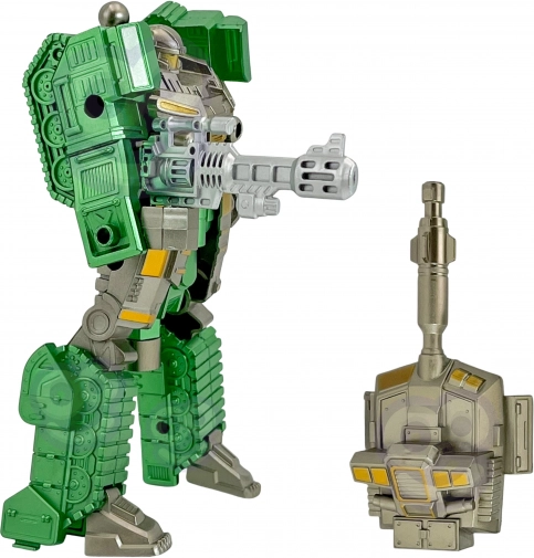 - Robotten kan transformeres fra robotfigur til militærkøretøj og tilbage igen