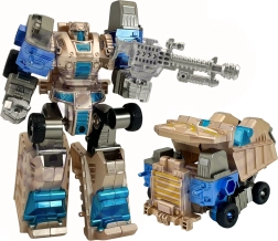 Det sjove sæt indeholder en transformerende robot, et ekstra våben og tilbehør nødvendigt til forvandling til køretøj, inklusive vejledning.