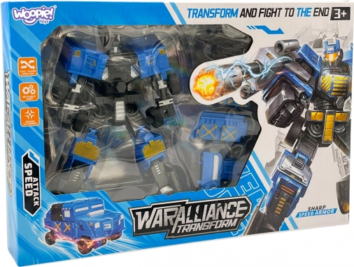 Gør dig klar til timevis af sjov med Woopie-robotten, som tilbyder uendelige lege-muligheder. Med én hånd kan du forvandle robotten til en bil og tilbage igen. Ideel til børn fra 3 år; dette produkt understøtter deres kreativitet, finmotorik, logiske tænkning og sociale udvikling. Sættet indeholder en robust transformerbar robot, kamp-tilbehør og dele nødvendige for at omdanne den til et køretøj.