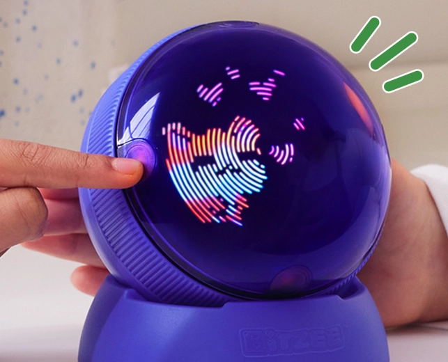 Den magiske kugle fuld af LED-effekter og animationer reagerer på dine bevægelser, den bevæger sig, lyser og laver søde lyde – skærmfri underholdning.