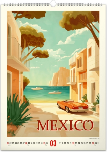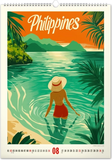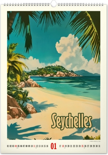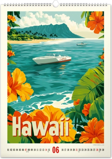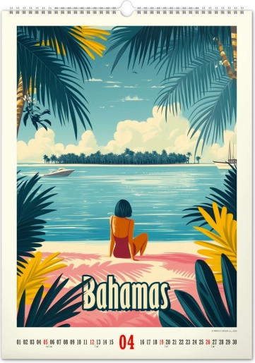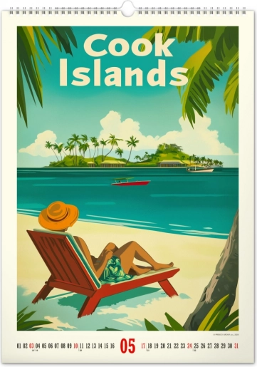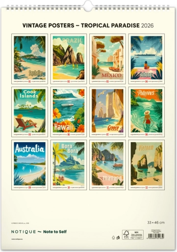 Bring en del af det tropiske paradis ind i dit rum med en vægkalender inspireret af vintage plakater. Indeholder: