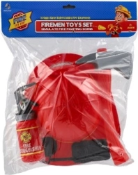 Sættet indeholder hjelm, brandslukker, walkie-talkie, økse og kompas til autentisk leg.