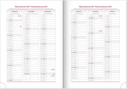 Ugentligt layout med tjekkisk-slovakisk kalendarium og supplerende versioner på engelsk, tysk, ungarsk og russisk.