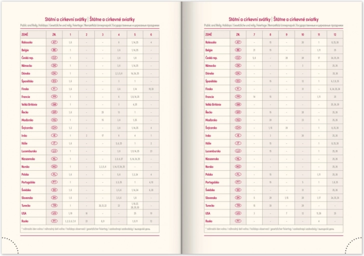 - Helligdagsoplysninger: tjekkiske og slovakiske helligdage, inklusive internationale helligdage.