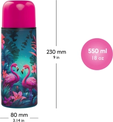 Termoflasken Flamingo fra BAAGL er designet til en ny generation skoleelever. Med et volumen på 550 ml og en vægt på 367 g passer den ideelt i rygsække og skoletasker. Specifikationerne omfatter: