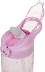 Flasken er udstyret med en praktisk vippe-tud og sugerør, hvilket gør det lettere for de mindste at drikke.