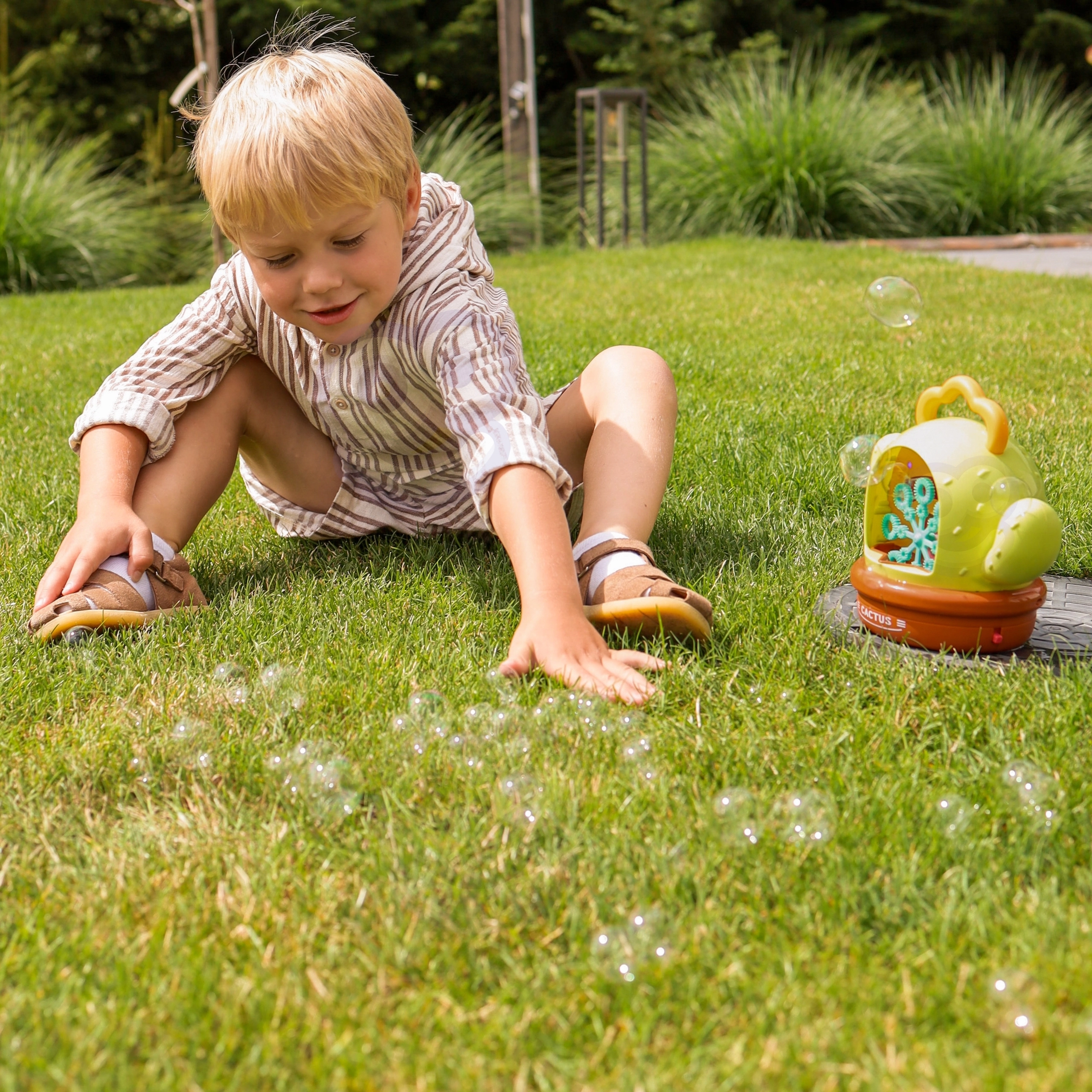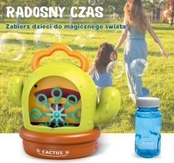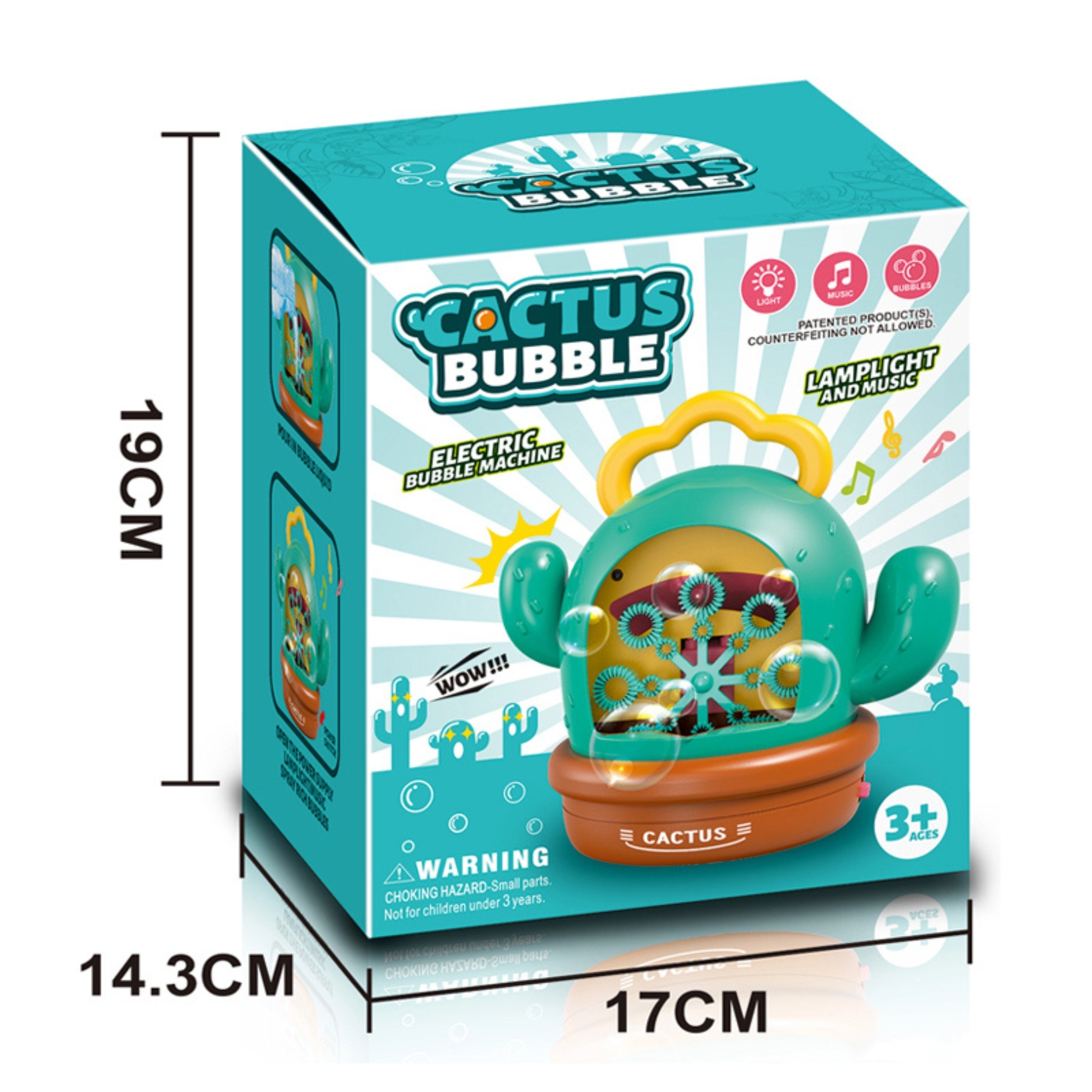 Den elektriske kaktusformede boblemaskine forvandler enhver eftermiddag til et magisk skue. Hæld væsken i, tryk på knappen, og lad dig omslutte af en strøm af glitrende bobler, som både børn og voksne elsker. Den høje kvalitet og det sikre design sikrer bekymringsfri leg både inde og ude.