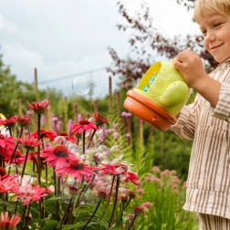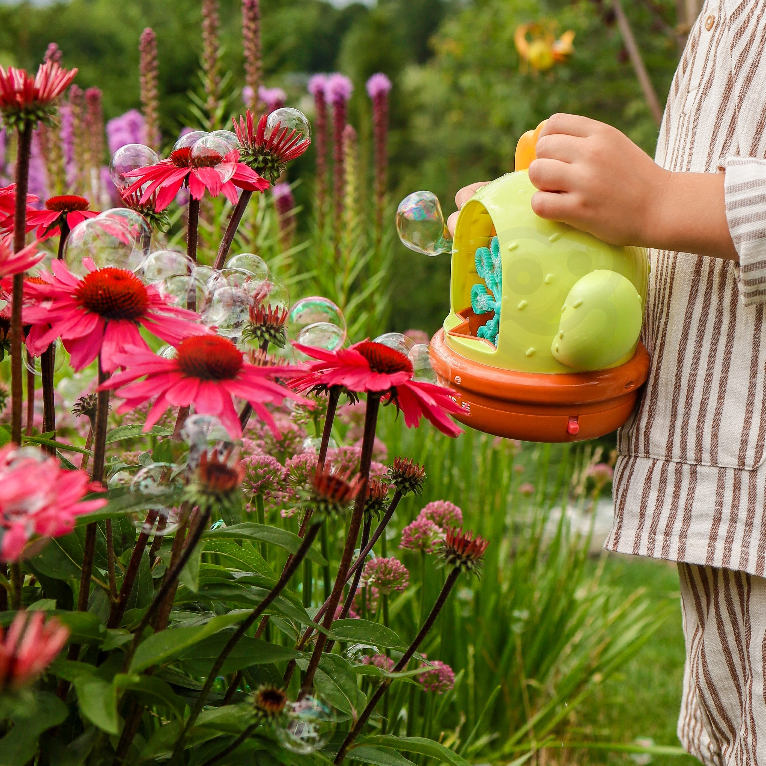 Legetøjet er udstyret med farvede lys og lydeffekter, som trækker børnene endnu mere ind i legen og stimulerer fantasien. Den lukbare beholder forhindrer spild af væske, og takket være det behagelige håndtag kan børn nemt tage boblemaskinen med i haven, på legepladsen eller hjem til bedsteforældrene.
