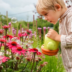 Automatisk blæsning skaber på få sekunder hundredvis af bobler – perfekt til havefester og indendørs leg.