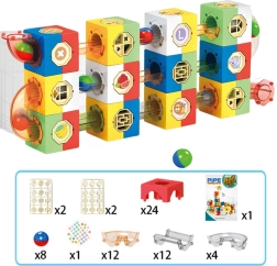 Dette kreative sæt giver børn mulighed for at designe og ombygge originale kuglelabyrinter efter deres egen fantasi. Kombinationen af klodser, lige stykker, faldstykker og gennemsigtige rør gør det både spændende og lærende at følge kuglernes tur – det udvikler logik, finmotorik og rumlig tænkning.