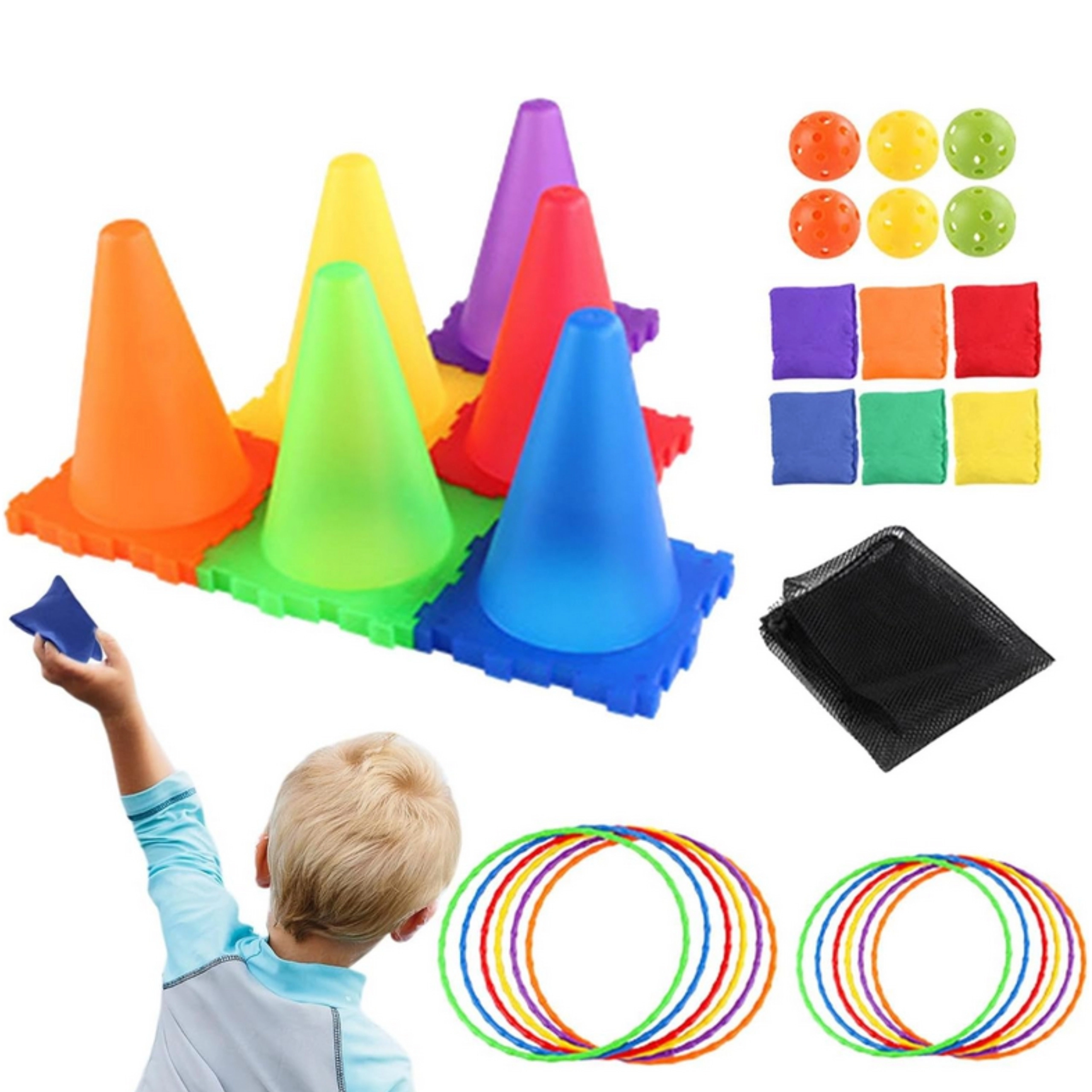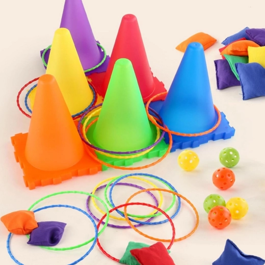 Kombinér ringkast, posekast og boldkast i ét sæt og varier nemt regler og sværhedsgrad. Ideelt til konkurrencer, træning af præcision og teamwork.