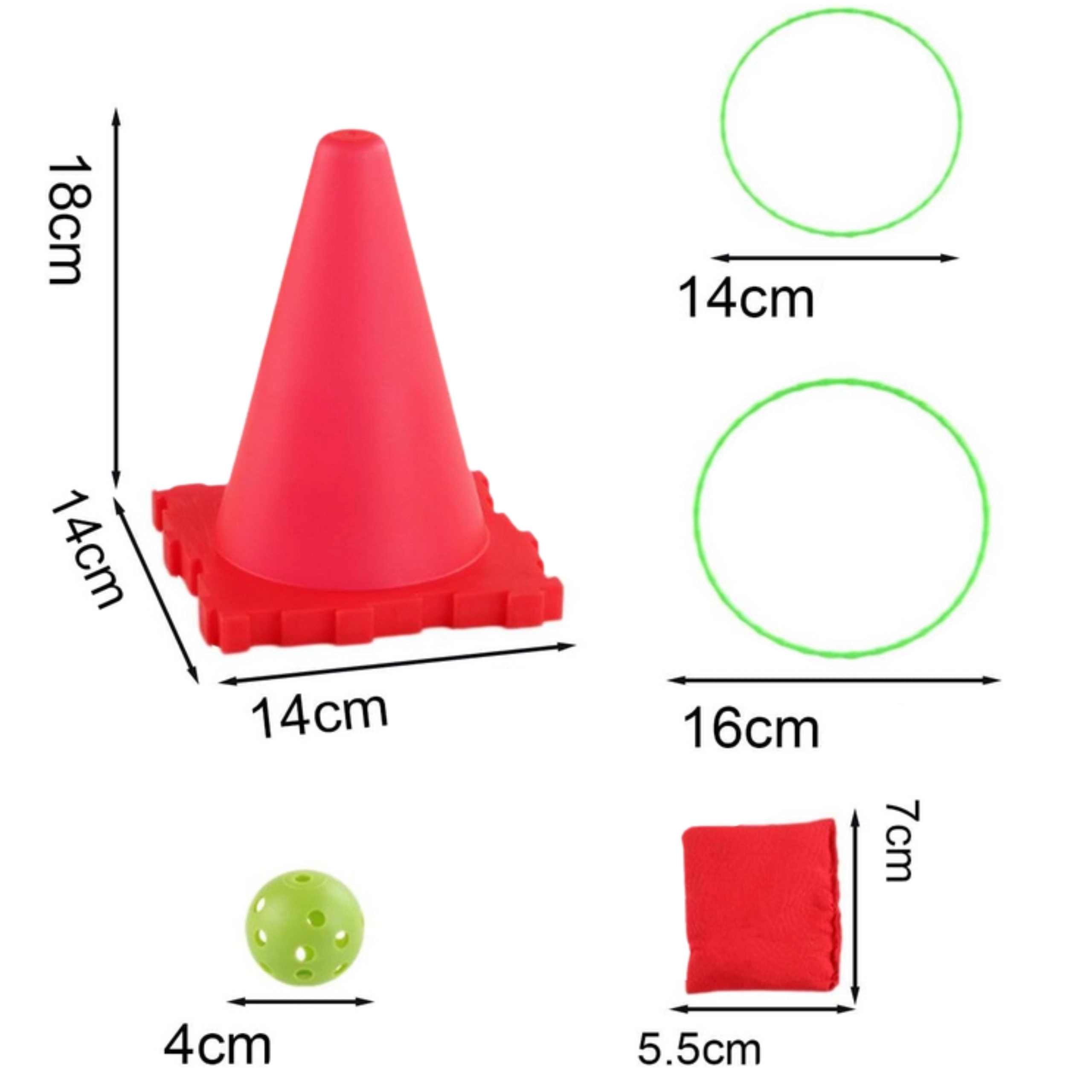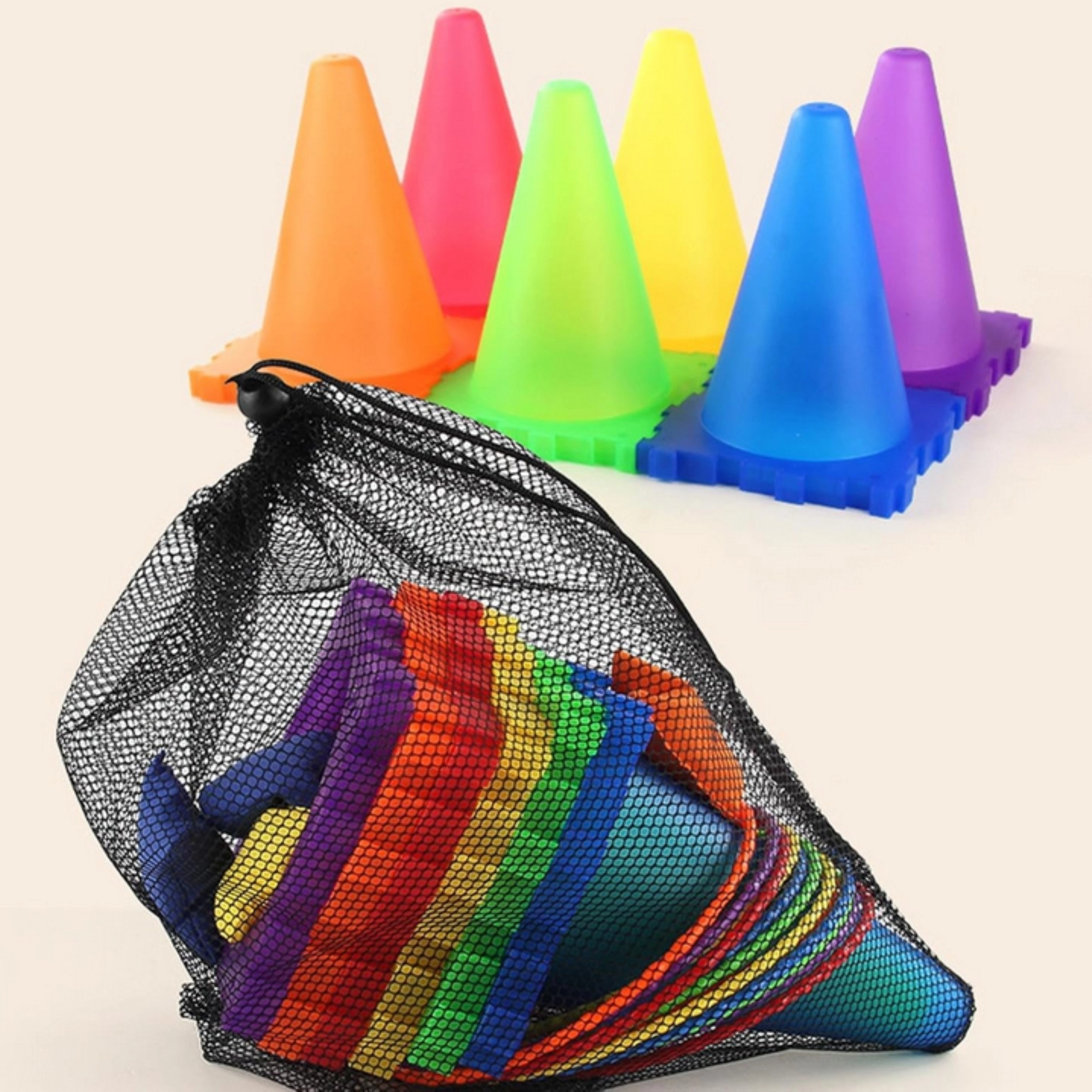 - Mobil og pladsbesparende: stabelbare kegler og lette dele til turen.