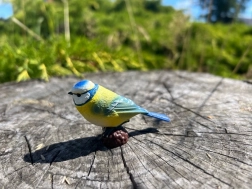 Denne præcist udarbejdede blåmejsefigur gengiver trofast farver og former hos den populære sangfugl. Hvert stykke er håndmalet for at fremhæve den autentiske fjertekstur og realistiske blå og gule nuancer. Den egner sig perfekt som pædagogisk hjælpemiddel til at lære om naturen, som unik interiørdekoration og som del af en samling.