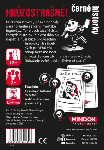 Vend tilbage til en verden af isnende mysterier med sættet Sort historier: Gruopvækkende. Du møder spøgelsesagtige åbenbaringer, paranormale møder, uhyggelige ulykker og urbane legender, som sætter både din logik og fantasi på prøve. Ideelt til aftener med venner, når du længes efter spænding, gåsehud og underholdende deduktion.