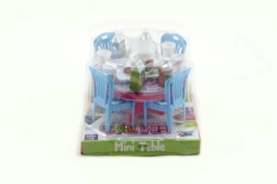 Dette møbelsæt til dukker bringer et fint lille bord med stole og små accessories ind i legen. Takket være den kompakte størrelse på 12 cm passer det perfekt til mindre dukker og dukkehuse. Den lette plastkonstruktion er holdbar og nem at vedligeholde.
