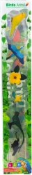 Sættet indeholder en ara papegøje, bølget papegøje, tukan, kolibri og en paradisfugl.