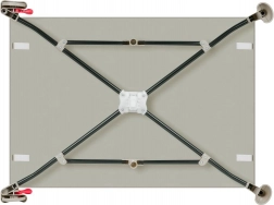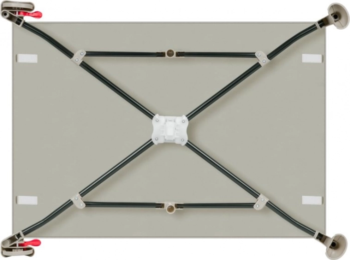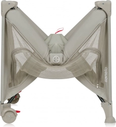 Sikkerheden i designet sikres af solide ben og bremser på hjulene. Plastafdækninger på kanterne giver beskyttelse mod skader. Sidepanelernes net sikrer kontinuerlig luftcirkulation, mens den ergonomiske 2 cm T25-skummadras giver optimal støtte til barnets rygsøjle.