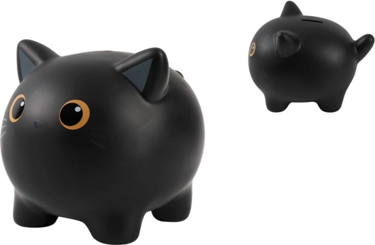 Sparebøsse formet som en sort kat, fremstillet af holdbart PVC, er ideel til børn til langsigtet opsparing.