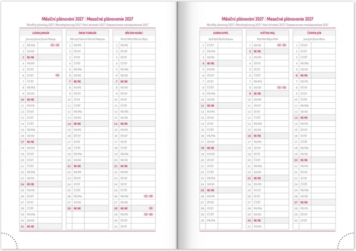 Planlæg dine uger effektivt med dagbogen Balakon 2026 i elegant bordeaux design. Denne dagbog er lavet af holdbart materiale og tilbyder en tjekkisk-slovakisk kalender med flere sprogversioner.