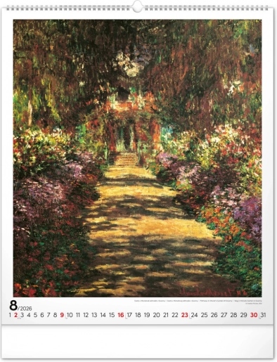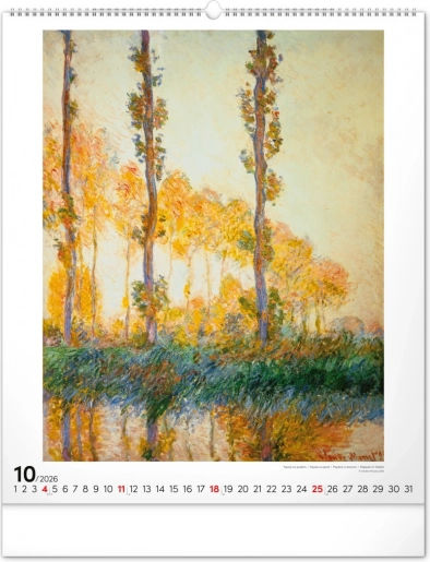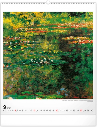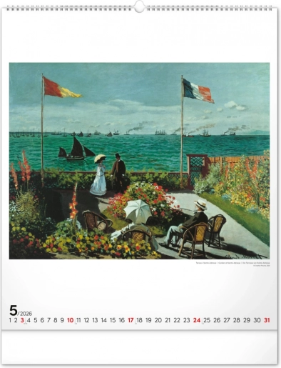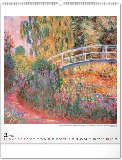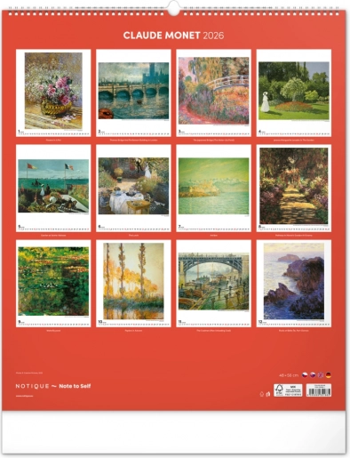 Hvis du beundrer Claude Monets værker, er denne vægkalender lige noget for dig. Hver måned præsenterer et nyt maleri fra hans rige galleri fyldt med friske landskaber og figurer.