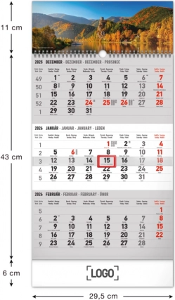 - Vægkalender med tre måneder