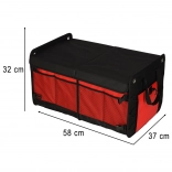 Organizeren til bilens bagagerum er en fremragende hjælper for enhver chauffør. Den udmærker sig med sin kapacitet på op til 60 liter, hvilket muliggør effektiv fordeling af tingene. Aftagelige skillevægge med velcro hjælper med at tilpasse det indre rum efter dine behov. Universelt materiale polyesterstof oxford sikrer lang levetid og modstand mod snavs.