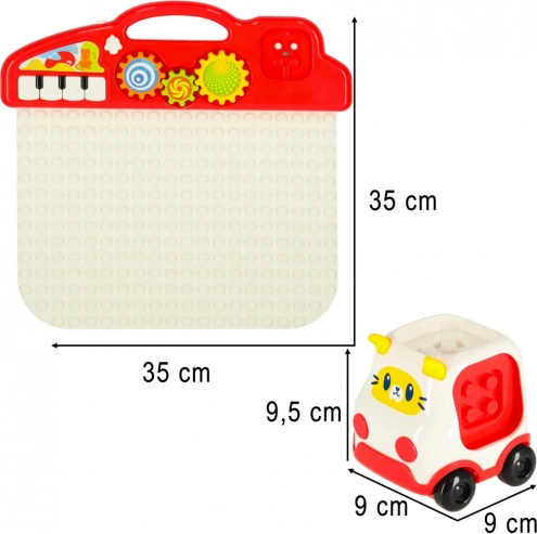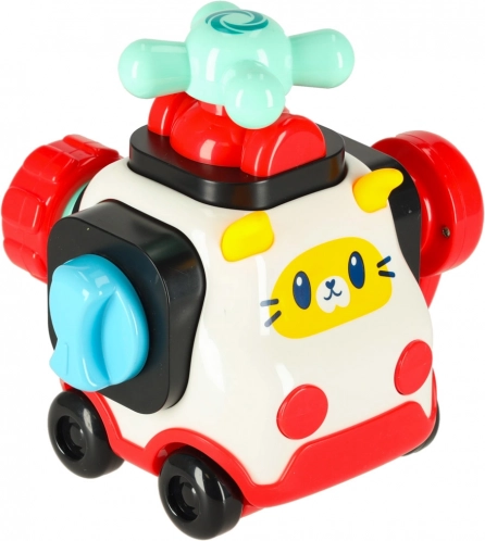 - Bil med kattemotiv, med mulighed for at tilslutte byggeklodser.