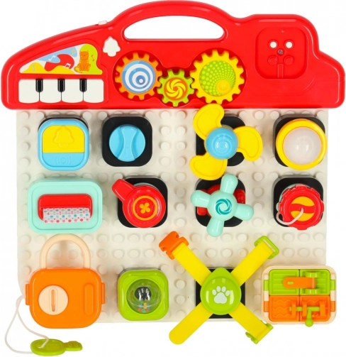 Det interaktive pædagogiske sansespil er designet til at støtte børns læring gennem leg. Denne sammensætbare manipulative tavle tilbyder et væld af interaktive elementer: