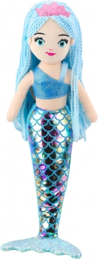 Plys havfrue med en højde på 48 cm er et unikt legetøj, der fanger opmærksomhed med sit magiske og stilfulde design. Hun har langt, blødt hår i en lyseblå farve og en holografisk hale, der minder om fiske skæl i turkisblå nuancer.