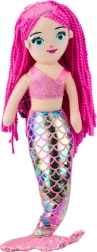 Plysbamse havfruen er udstyret med en effetfuld holografisk hale, der minder om skæl, som smukt glitrer i lyset og henviser til den magiske undervandsverden. Den har også langt lyserødt hår i form af flettede snore, der kan kæles for og styles, en glitrende top på én skulder og en lyserød tiara på hovedet.