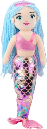 Denne charmerende plyssirene imponerer ikke kun med sin størrelse, men især med sit æstetiske og magiske udseende. Halen er lavet af et materiale, der efterligner glitrende skæl med en holografisk effekt. Langt, blåt hår er formet som snorefletninger, hvilket skaber en betagende figur som fra et undervandsrige.