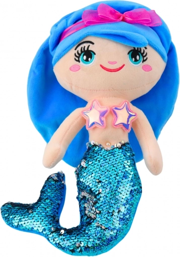 Sød plys havfrue med palietter på halen, ideel til børns leg og værelsesdekoration. Skifter farve og stimulerer berøringen.