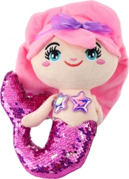 Denne legetøjsdukke har store broderede øjne, et smilende ansigt, pink hår dekoreret med en sløjfe og en effektfuld hale dækket af pailletter. Pailletterne skifter farve fra lilla til sølv, når man stryger dem med hånden, hvilket giver børn glæde og stimulerer deres følesans og fantasi.