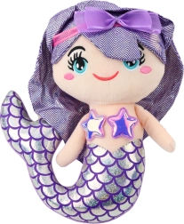 Denne plyshavfrue på 25 cm høj imponerer med sit smukke design og bløde berøring. Legetøjet er udsmykket med to broderede øjne, et smilende ansigt og to dekorative stjerner på kroppen. Med sit bløde zigzag-mønsterede hår skiller den sig ud og tiltrækker børns opmærksomhed.