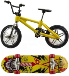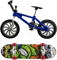Dette kompakte sæt kombinerer en finger-BMX cykel og et skateboard, så børn kan afprøve forskellige kørestile og tricks. Mini-modellerne er detaljeret udført, har bevægelige hjul og letbetjente elementer til gnidningsfri udførelse af tricks på bordet, bænken eller hjemmelavede forhindringer.