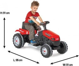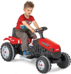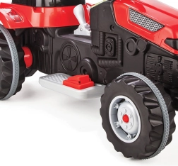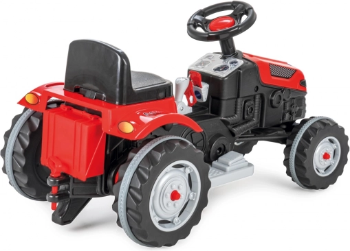 Traktoren er udstyret med en gearstang til kørsel frem og tilbage, som gør betjeningen enklere. Den har også et horn til lydsignalering og en automatisk bremse, der aktiveres, når barnet tager foden af gassen, hvilket sikrer brugerens sikkerhed.