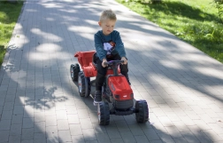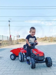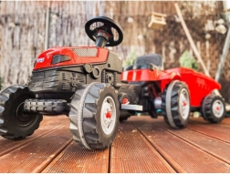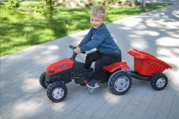 Traktor med pedaler Farmer GoTrac MAXI med trailer er den perfekte gave til hvert barn. Den har et patenteret styresystem, som gør det nemt at køre selv for de yngste brugere.
