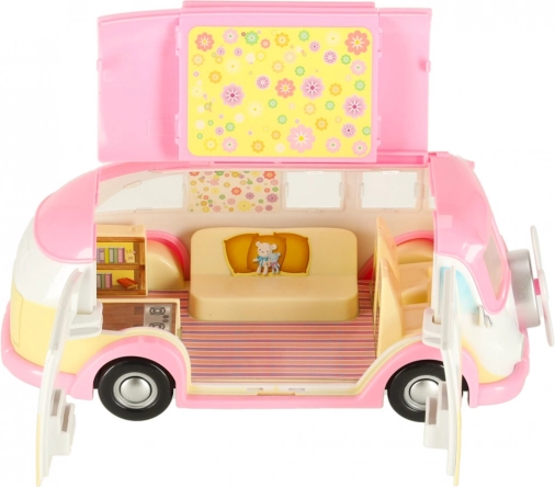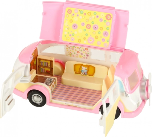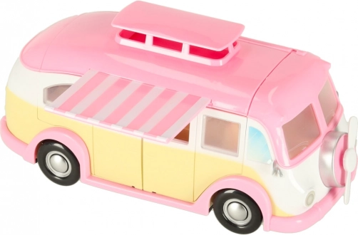 Denne søde isbil-camper i rosa og creme forvandler hvert børneværelse til en lille bistro på hjul. Børn kan åbne tag og døre, trække markisen ud og betjene kunder ved bordet med parasol. Realistiske interiørdetaljer inspirerer til kreative historier og timevis af leg.