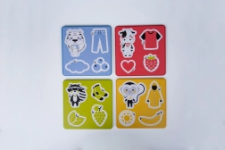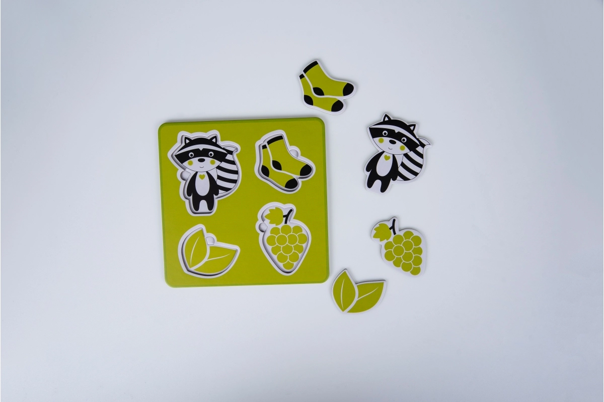 Takket være det gennemtænkte design med små fordybninger er håndteringen af brikkerne let selv for små børnehænder. Sættet er ideelt til de første puslespilsaktiviteter, udvikling af finmotorik og tålmodighed. Den varierede sværhedsgrad på de enkelte plader fastholder opmærksomheden og motiverer til videre udforskning.
