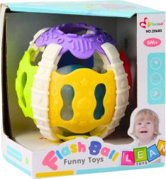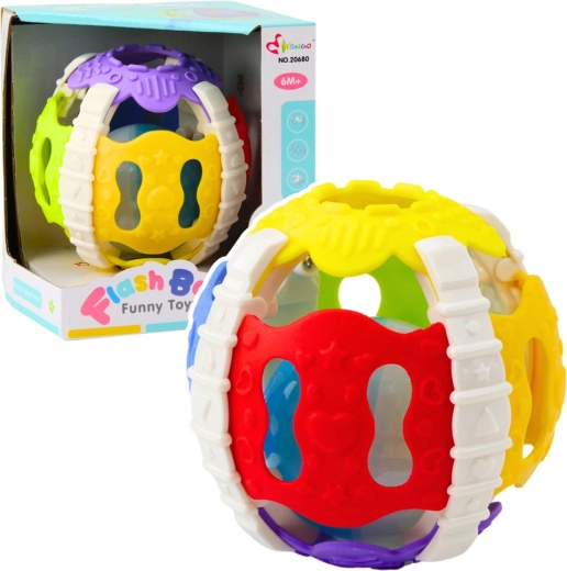 Inde i bolden er der en plastkugle, som ved bevægelse skaber blide lyde og farvede lys, hvilket effektivt fanger barnets opmærksomhed. De interaktive lys- og lydeffekter underholder ikke kun, men støtter også udviklingen af koordination, motoriske færdigheder og sanser.