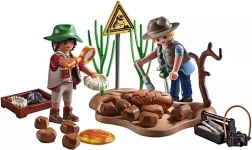 Afslør oldtidens hemmeligheder med det spændende PLAYMOBIL-udgravningssæt! Skjul fossiler som ammonitter, trilobitter og dinosauræg i klipperne og genopdag dem med realistiske værktøjer. Brug pensler, hammer og lup til omhyggeligt at analysere dine fund og opbevar dem sikkert i trææsken. Med det medfølgende kamera kan palæontologerne dokumentere hver spændende opdagelse. Den detaljerede bundplade med buske og grene indbyder til endeløs fantasifuld udforskning. Med PLAYMOBILs kærlige design bliver hver udgravning et eventyr tilbage i tiden!