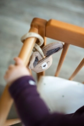 Vedligeholdelse: Før første brug anbefales det at vaske legetøjets ører. Træringen må ikke vaskes, det er nok at skylle den med vand. Når den bliver slidt, kan en ny købes. Dog aldrig vaske legetøjet i hånden, for at undgå skader på trykket.