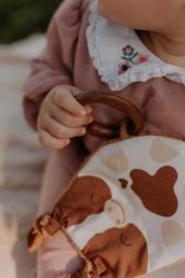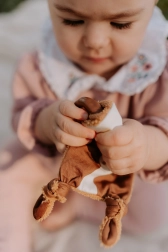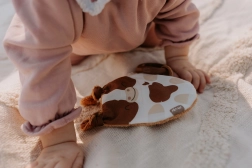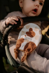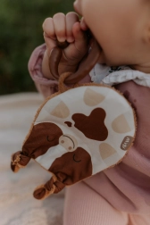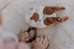 Fremstillet af kvalitetsmaterialer, tilbyder legetøj Kalv en række interessante elementer, der udvikler sanserne hos dine små. Ansigtet er lavet af trykt stof af 100% bomuld, med certificering for børn op til 3 år. Bagsiden i bambusfrotté giver en blød og behagelig overflade.