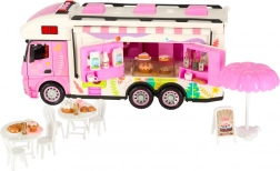 Dette sæt indeholder forskellige tilbehør, der giver børn mulighed for at simulere ægte camping. Herunder er bord, stole, mini køkkenredskaber og klistermærker, der tilføjer et personligt præg. Børn kan også opstille en reklamebanner og sætte et haveparasoll op, hvilket giver endnu flere lege muligheder.